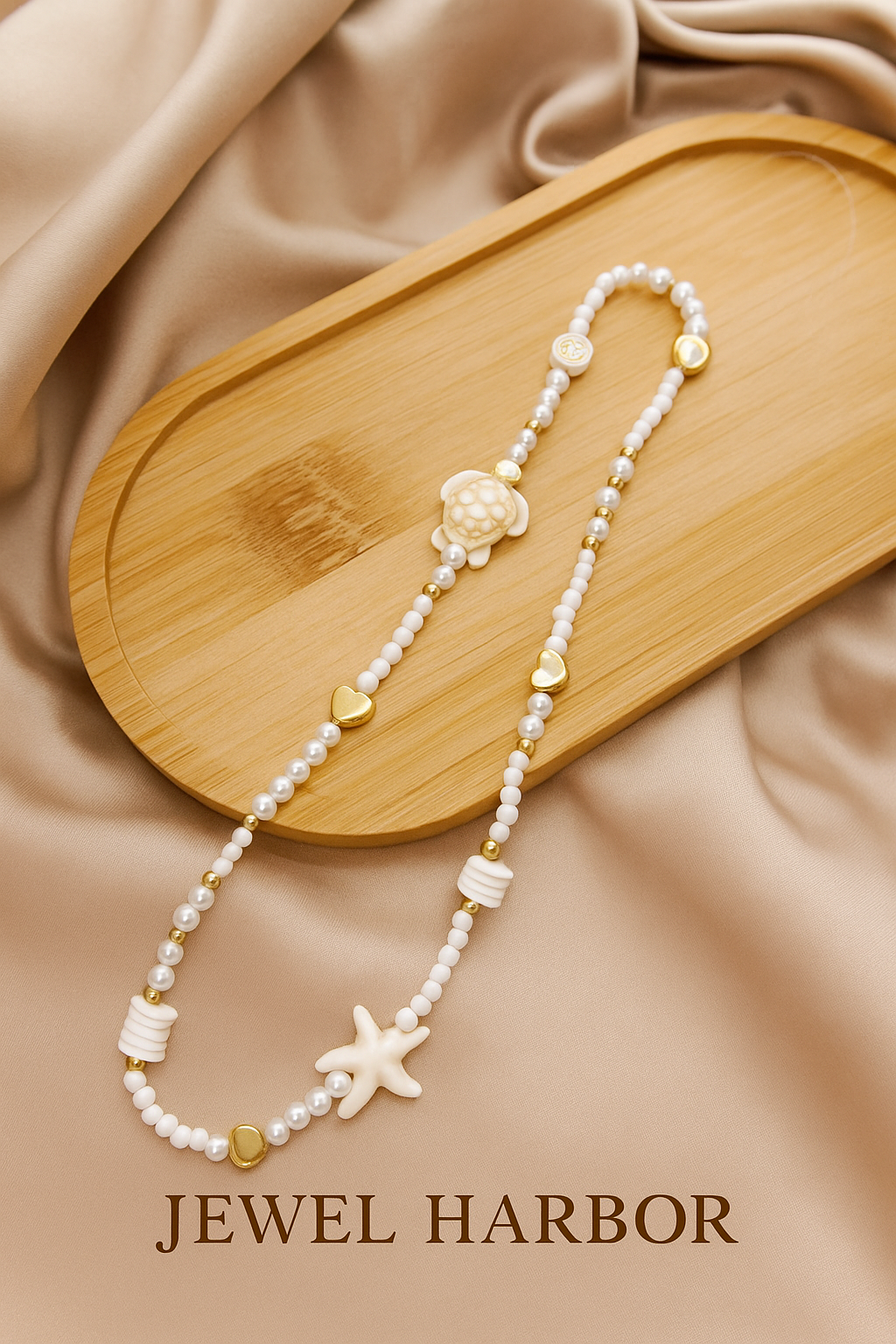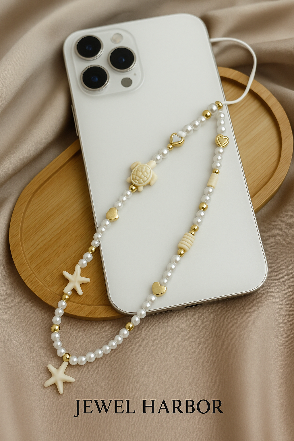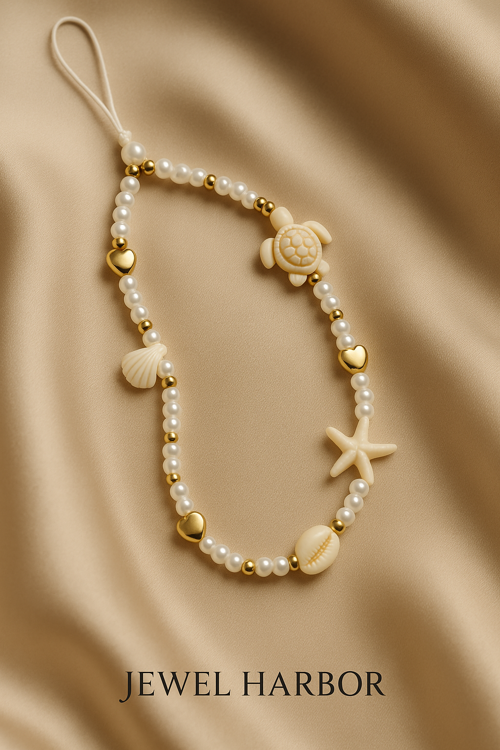 Escape to the shoreline with the Coastal Dream Phone Charm a handcrafted accessory inspired by soft sands and salty air. Featuring pearl toned beads, golden hearts and delicate ocean charms including a turtle, starfish and shell this piece captures the carefree beauty of summer days by the sea. Lightweight and versatile, it’s the perfect way to bring a touch of beachside bliss to your phone, bag, or keys.