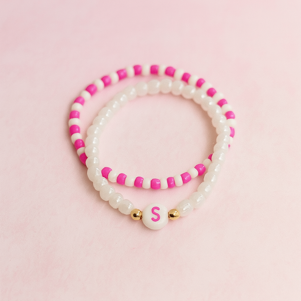 Keep your friendship sweet and close with the Blossom Bracelet a playful design featuring pink and white beads that radiate joy and positivity. Each bracelet is finished with a customisable initial bead making it the perfect matching keepsake for you and your best friend.