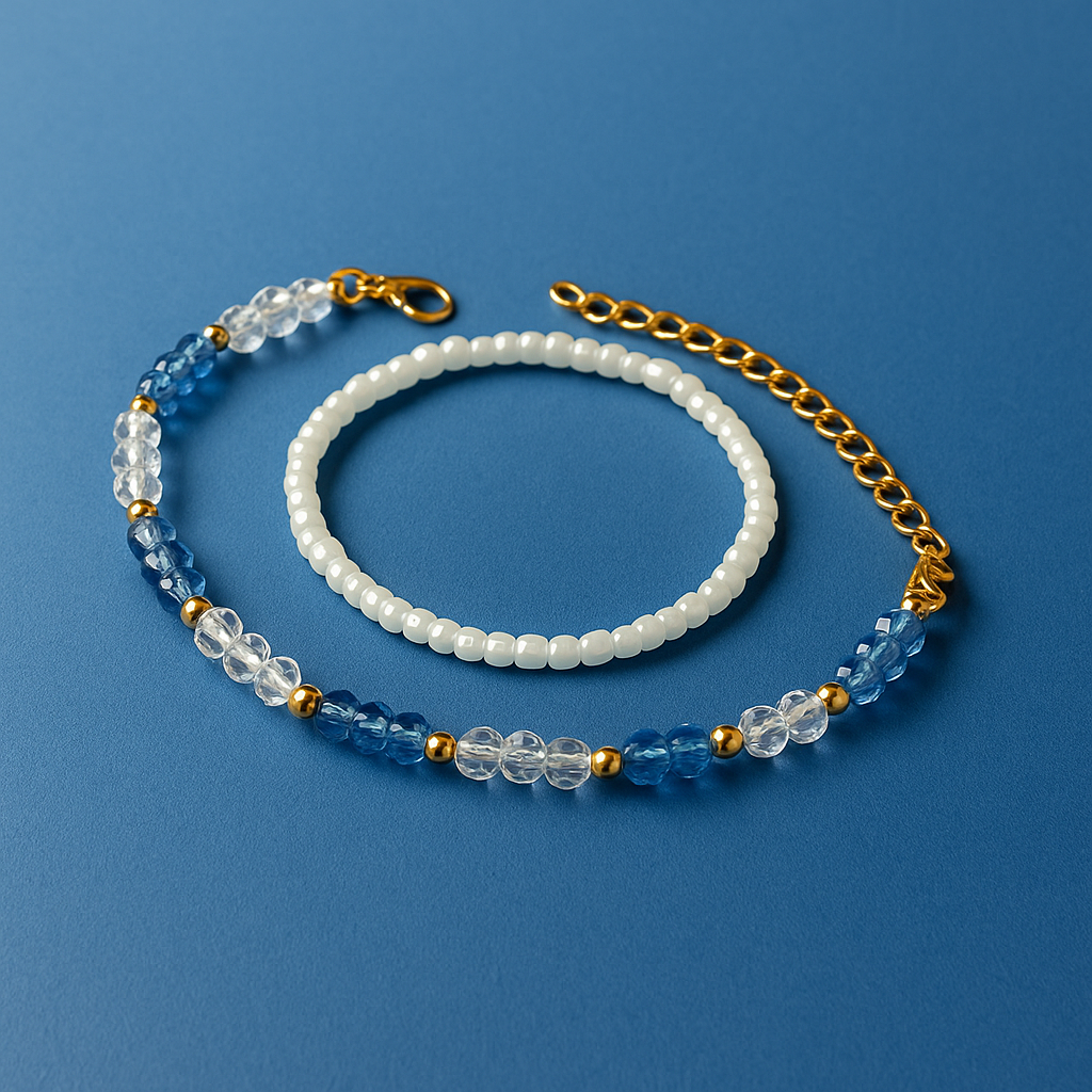 Part of the Crystal Collection, the Frosted Sapphire Bracelet symbolises wisdom, strength and inner calm. Blue crystals are often associated with clarity, truth and serenity while gold accents reflect prosperity and divine energy. Together, they create a piece that inspires confidence, balance and a sense of timeless elegance fit for royalty.
