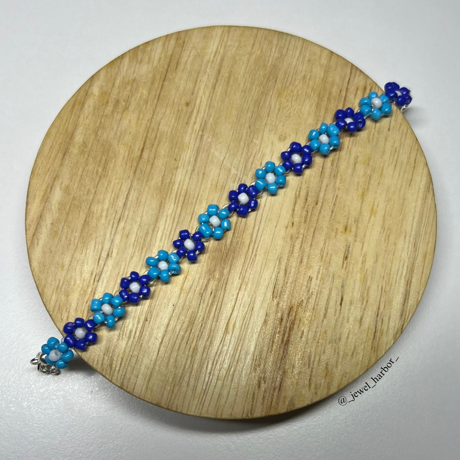 Dive into calm with the Ocean Blue Bracelet, a refreshing design inspired by the soothing rhythm of the sea. Handcrafted with turquoise and navy floral beads, accented with crisp silver details, it captures the breezy charm of ocean waves and open skies. =