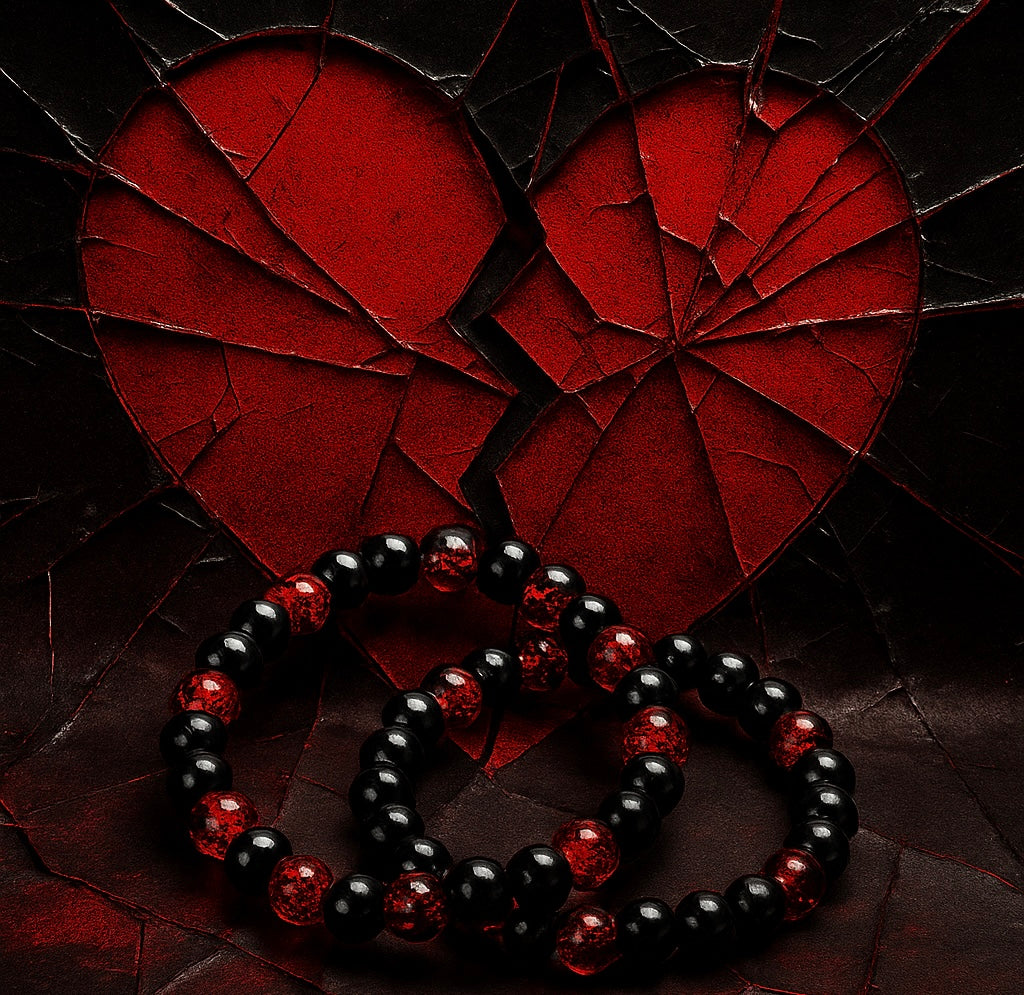Part of the Heartbreak Collection, the Savage Revenge Bracelet symbolises resilience, transformation, and reclaiming strength after pain. Crimson reflects passion and intensity, black embodies mystery and power, and the cracked glass texture speaks of breaking yet still shining. Together they tell a story of heartbreak turned into fire a reminder that even in the darkest moments, you rise stronger, fiercer and unshakable.