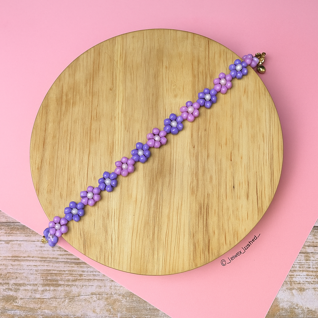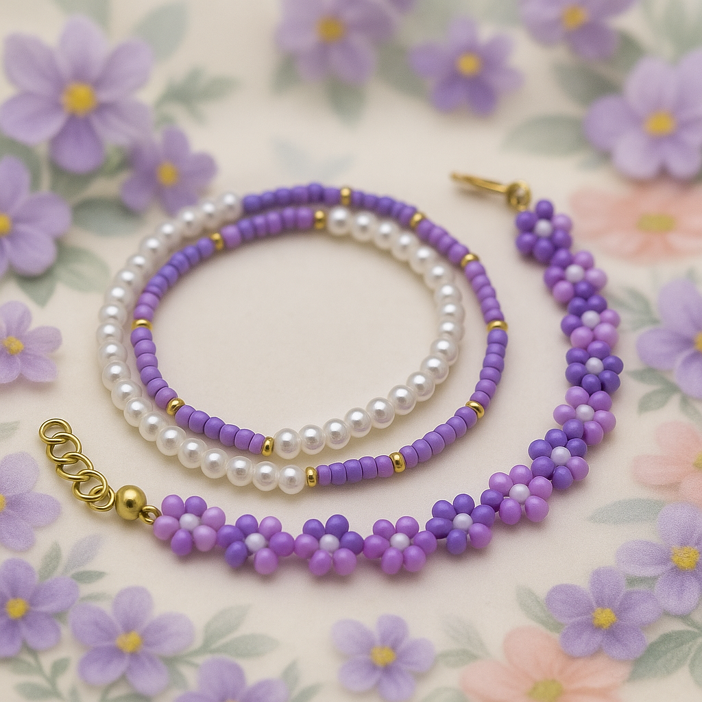 Soft, dreamy, and effortlessly elegant the Violet Vell Bracelet is a floral inspired design that blends grace and whimsy with every bead. Handcrafted with lavender and violet floral beads it’s paired with timeless faux pearl accents and refined gold detailing for a look that feels both delicate and enchanting. It offers the perfect fit for everyday wear or special occasions.
