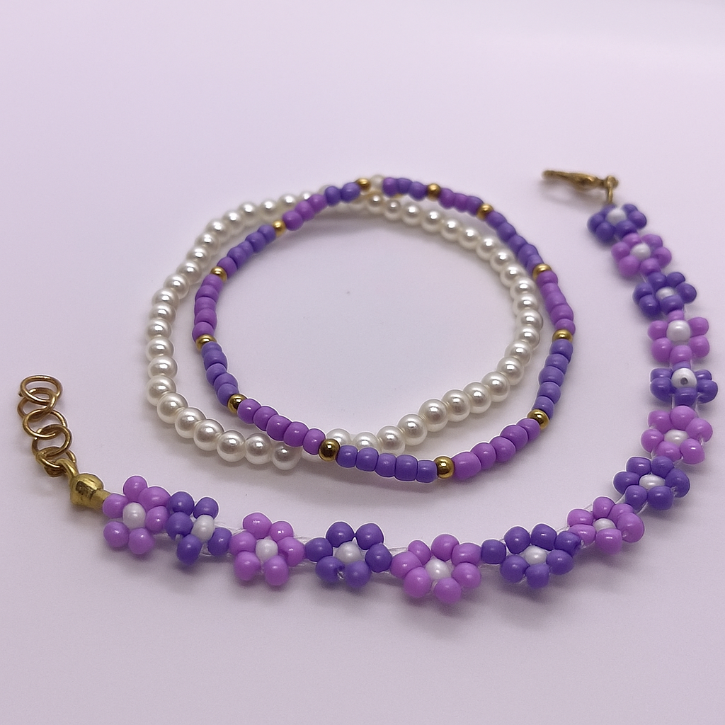 Part of the Gardenia Collection, the Violet Vell Bracelet symbolises serenity, renewal, and quiet strength. Purple reflects imagination and spiritual beauty, pearls represent purity and grace, while gold accents embody light and warmth. Together they create a piece that feels like a blossoming violet garden a gentle reminder to embrace elegance, calm and inner peace.